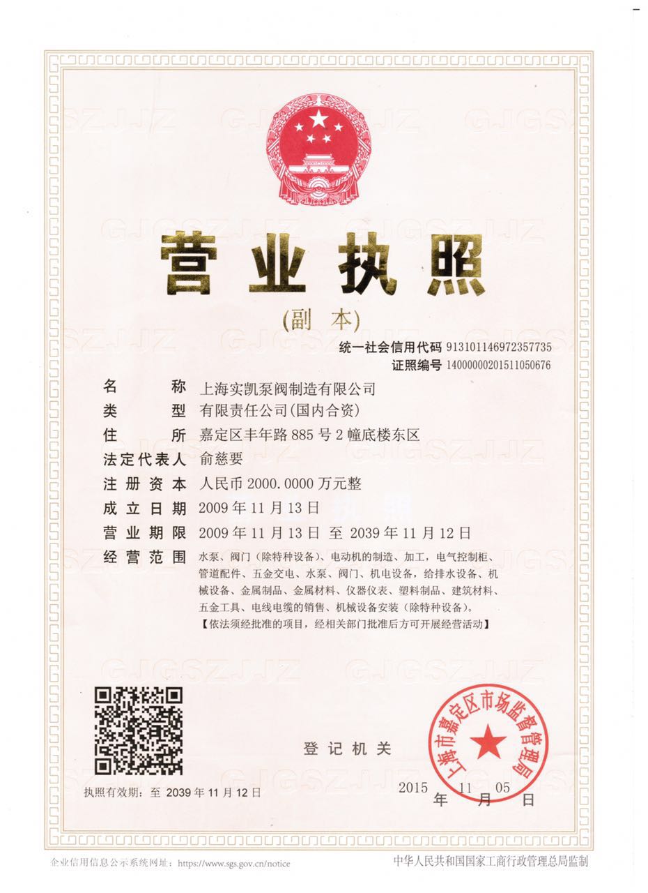 上海實凱泵閥制造有限公司坐落于嘉定區(qū)馬陸鎮(zhèn)彭趙工業(yè)區(qū)。創(chuàng)辦于2009年,是一家集工業(yè)泵設(shè)計、研發(fā)、生產(chǎn)、銷售、服務(wù)為一體的制造企業(yè)。公司產(chǎn)品涉及石油、化工、制藥、鋰電池,噴泉園林、環(huán)保、食品、供暖、航天工程、城市給排水、高樓建筑、電鍍、冶金、水利、核消防、新能源、人防等領(lǐng)域以及其它工業(yè)配套等行業(yè)。了解詳情 →